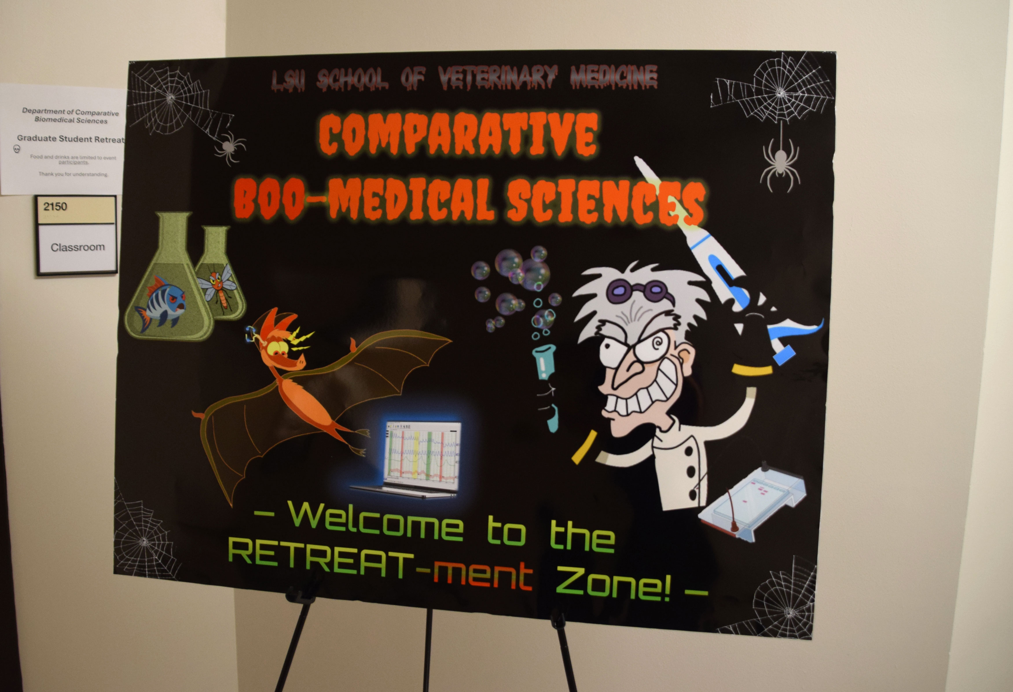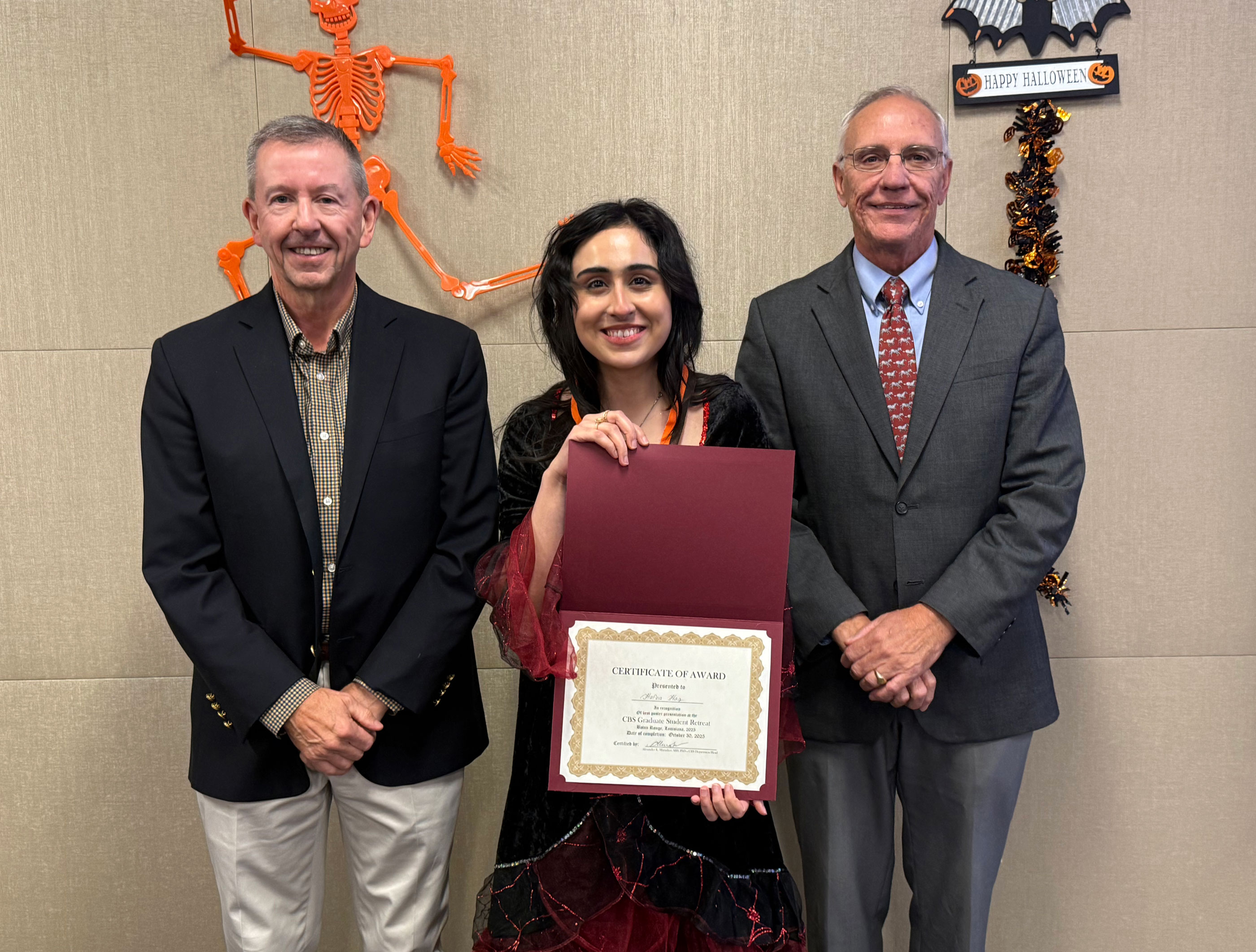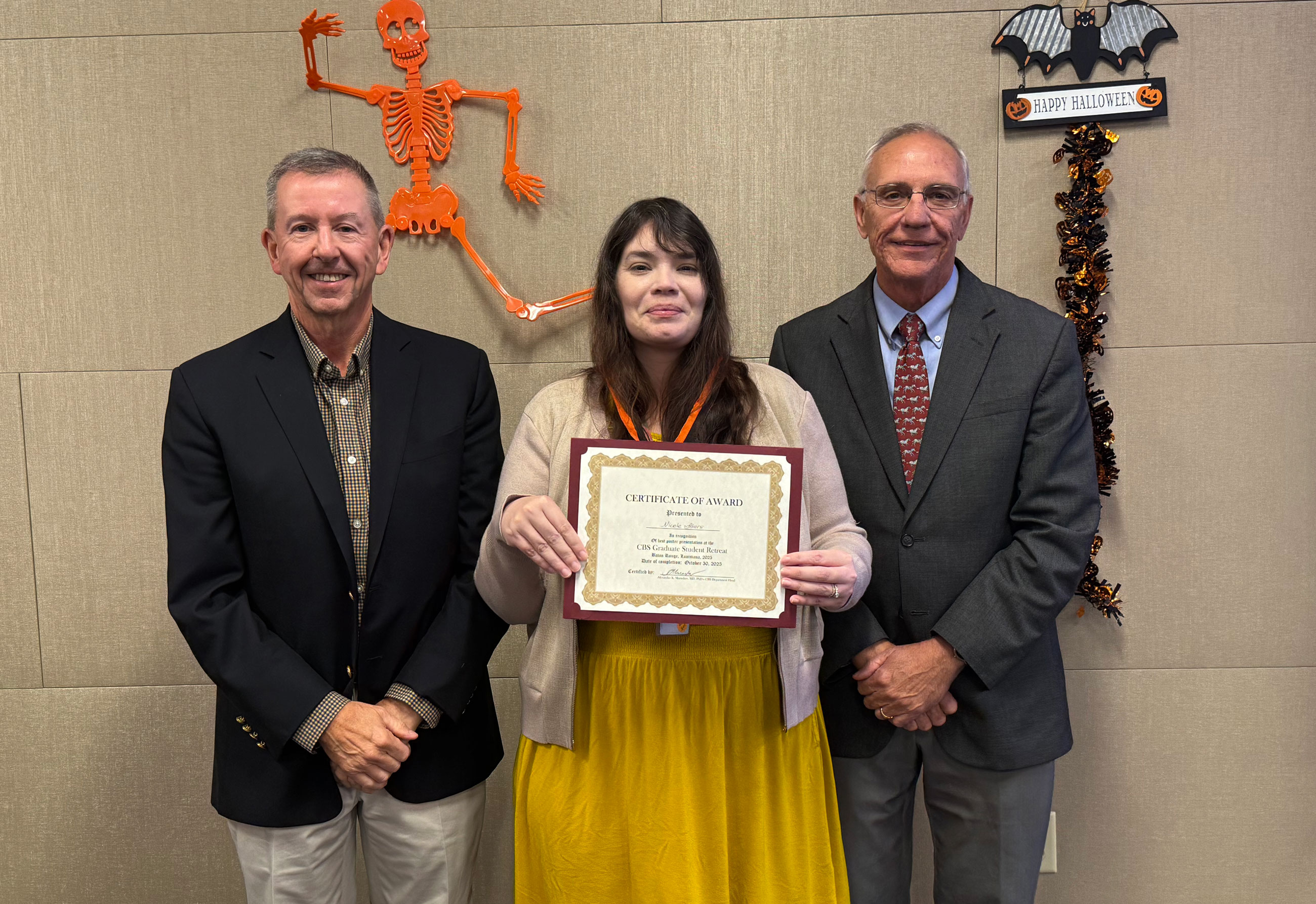 The 2025 CBS Retreat took place at LSU Vet Med. All CBS faculty, graduate students, postdocs, and staff were in attendance. The retreat was Halloween-themed, with Halloween decorations covering the room. Dr. Michael Graziano and Dr. Cyril Clarke were the guests of honor. Dr. Wentao Li, an alumnus of LSU in Dr. Shisheng Li’s lab, was the guest speaker.