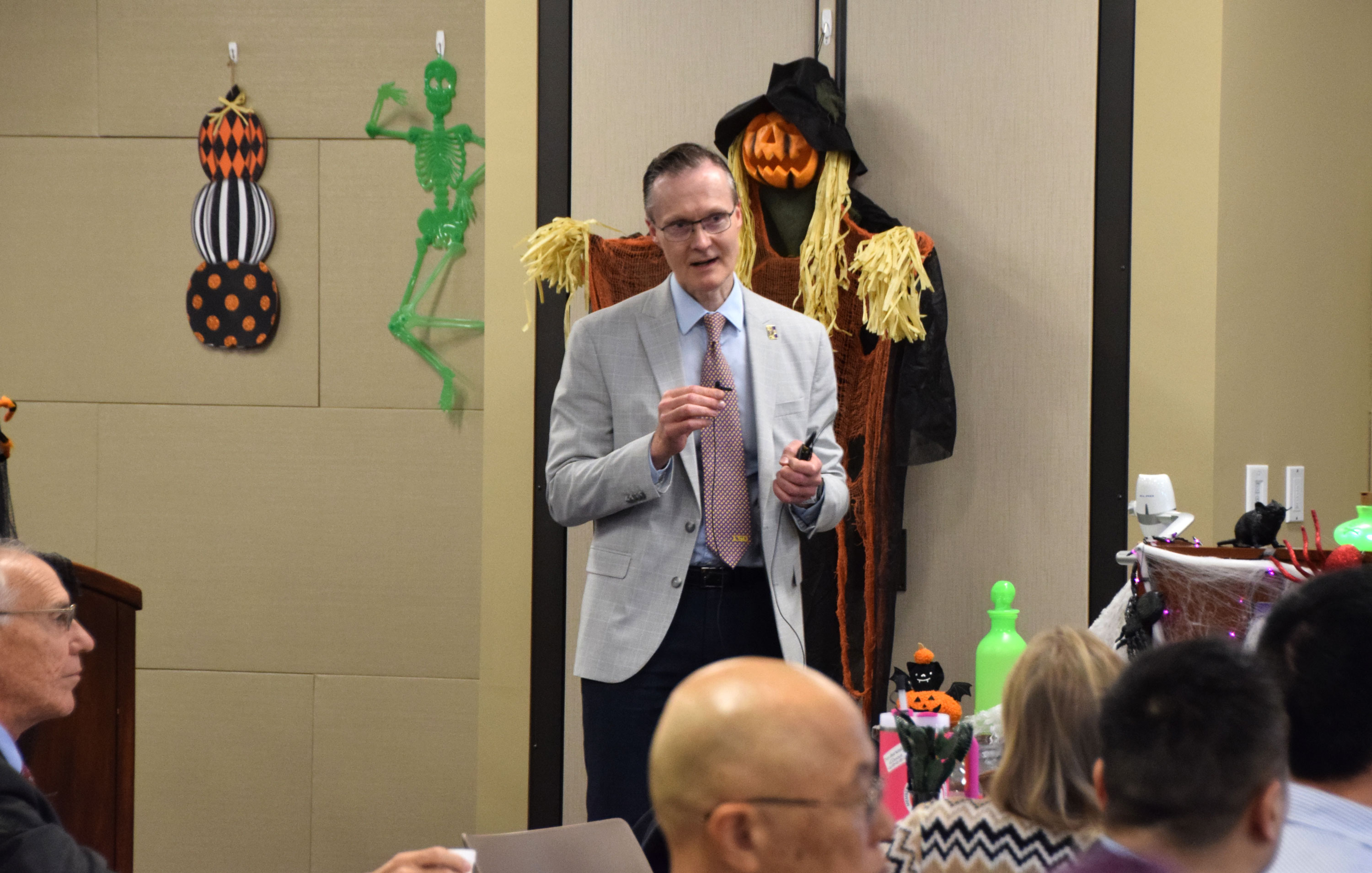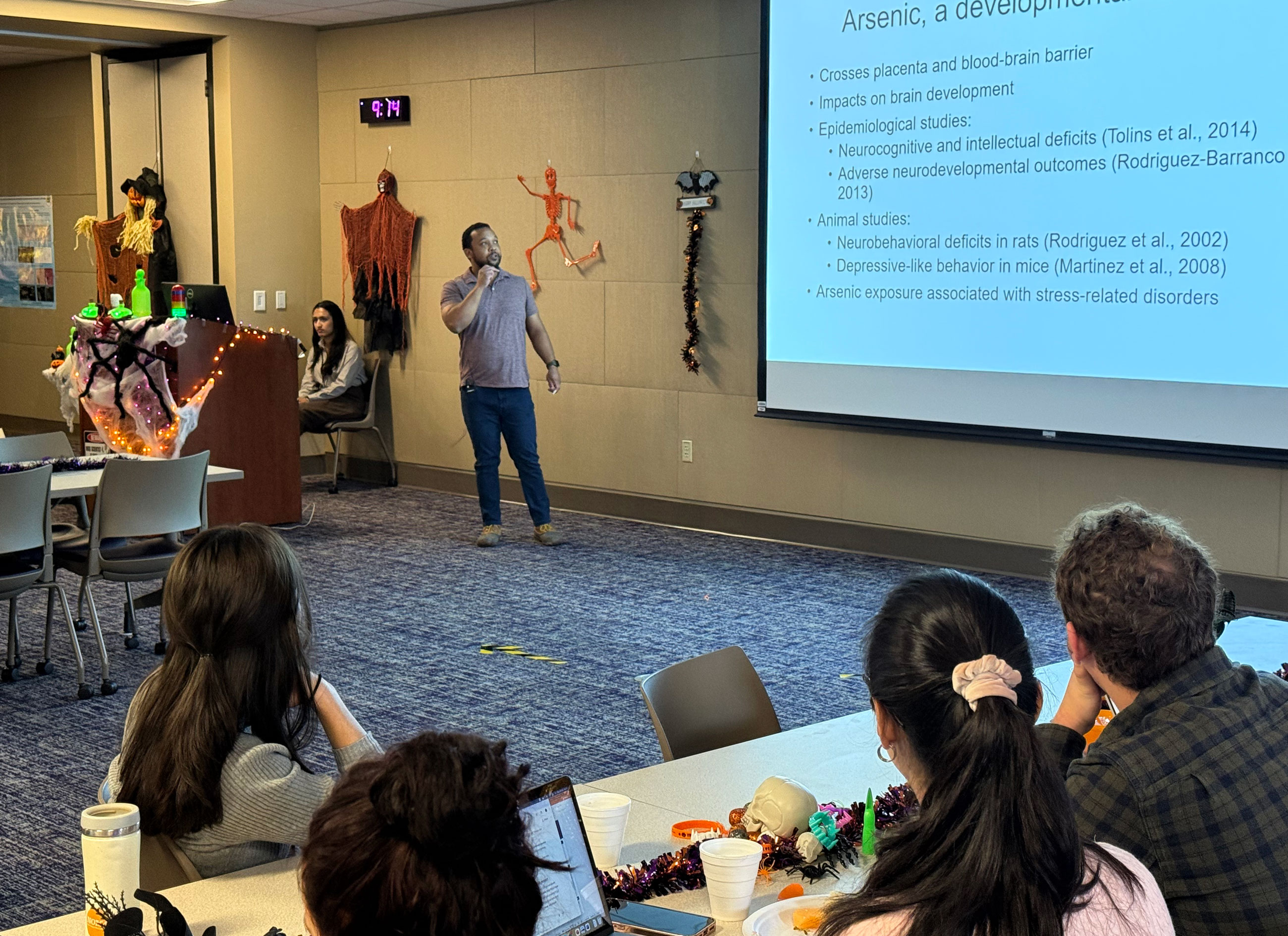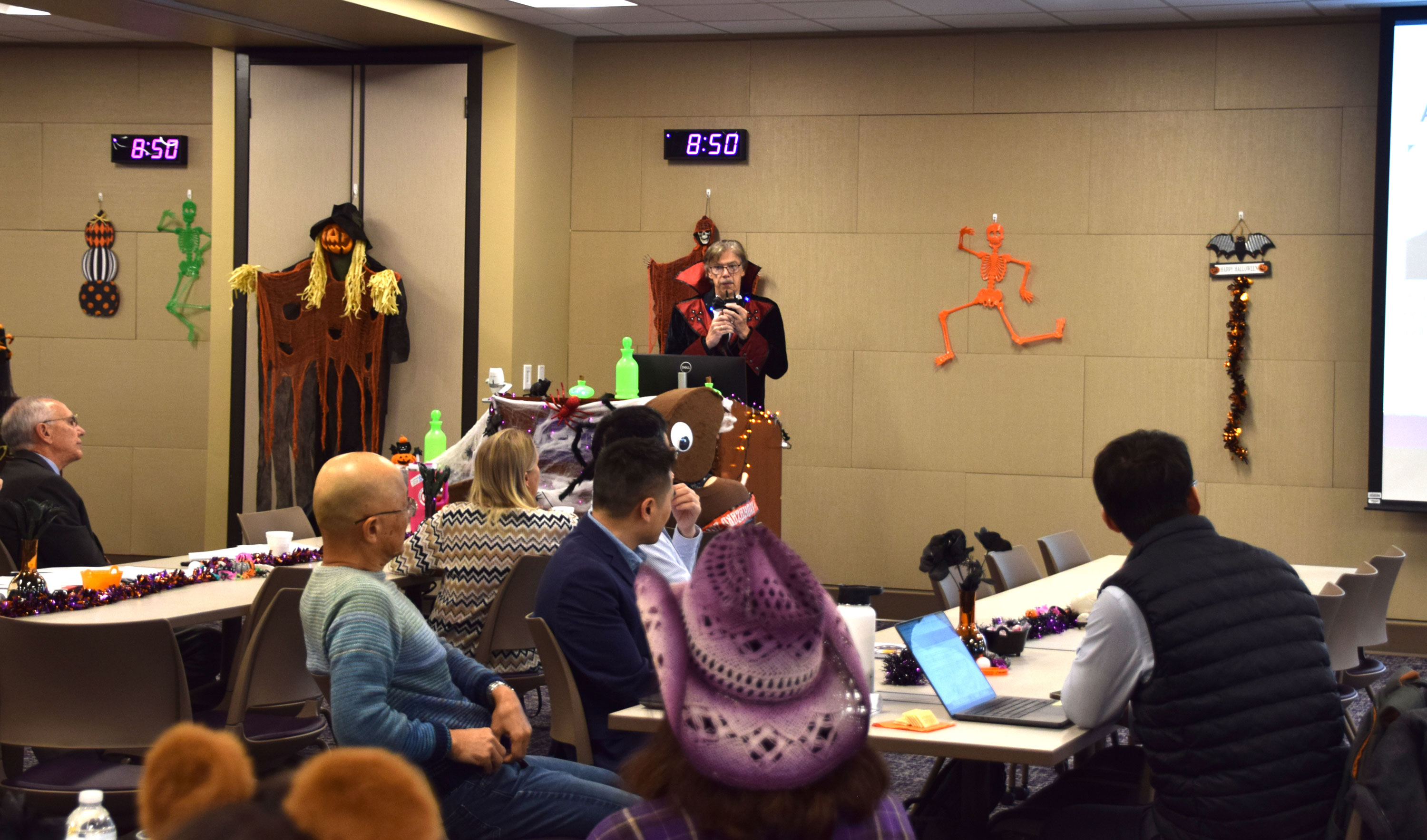 The 2025 CBS Retreat took place at LSU Vet Med. All CBS faculty, graduate students, postdocs, and staff were in attendance. The retreat was Halloween-themed, with Halloween decorations covering the room. Dr. Michael Graziano and Dr. Cyril Clarke were the guests of honor. Dr. Wentao Li, an alumnus of LSU in Dr. Shisheng Li’s lab, was the guest speaker.